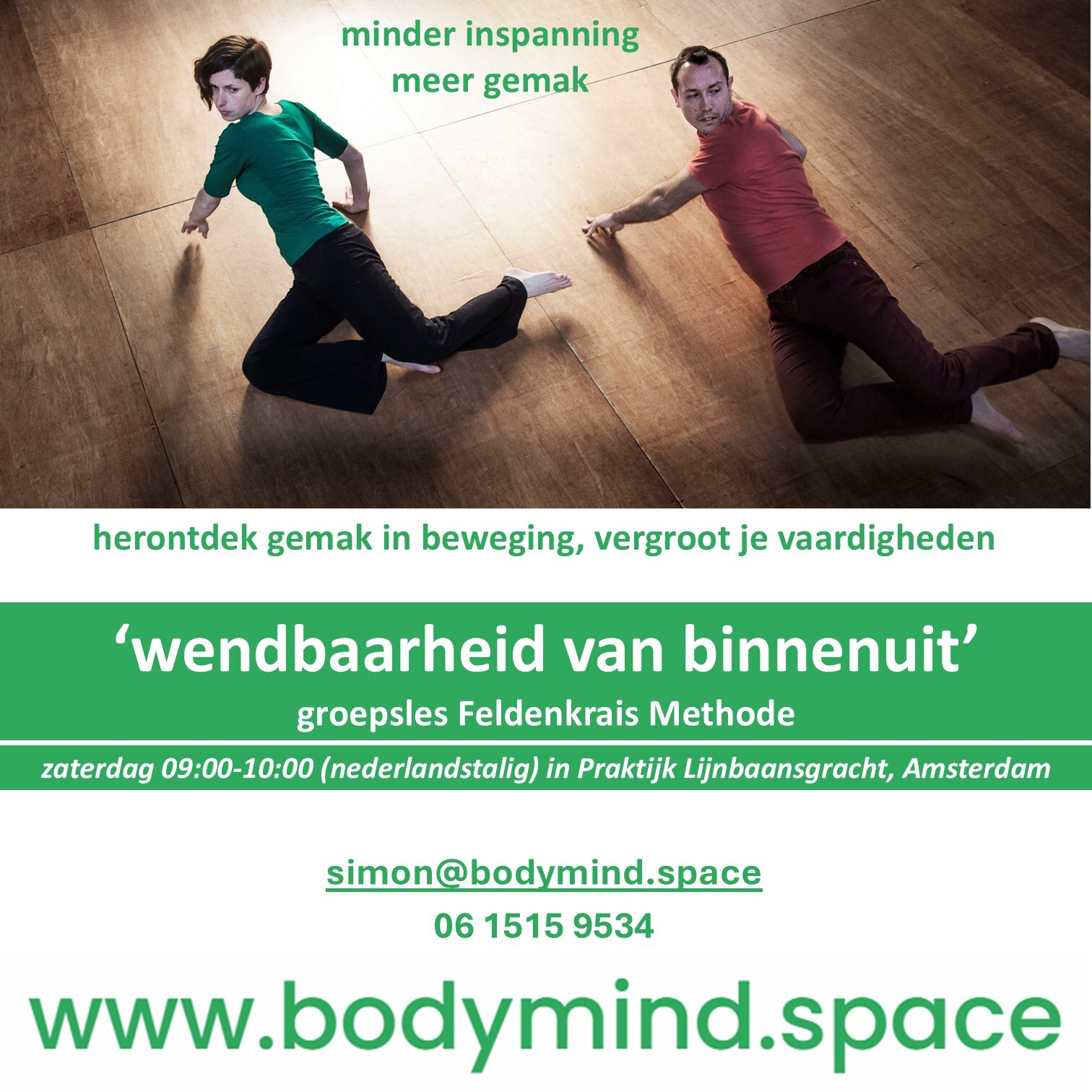 Maandagavond 20:00 - 21:00 uur. simon@bodymind.space
